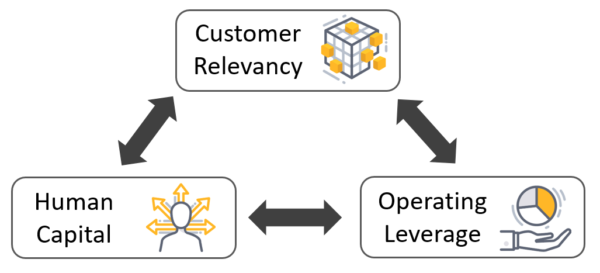 Human Capital: Of all the strategic initiatives, this one is the easiest for managers to understand yet the hardest initiative to make a difference. We all say that people are our most important asset, yet few companies channel enough resources to make a difference. Do you have an efficient and employee-friendly onboarding process, are you recruiting the talent you will need for the future, do your employees have the tools and authority they need to make a difference, are you training to the level of excellence and are you inspiring your people such that they do great work to help you overcome the challenges of relevancy and operating leverage?